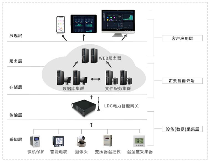 汇致智能 HZE7000 能源物联网电力监控系统基于当前广泛应用的现场总线方式及分布的网络结构,实现电力系统信息的交换和管理。集远程电参量监控、开关量监控、用电管理、电 能质量分析及报表打印,负荷控制、运行关系为一体。通过通讯网络、计算机和电力自动化 应用组套软件为基础,真正实现了对电力系统的一次设备的分散监控、集中管理的智能化监 控管理要求。为用户提供安全、可靠、经济的电能管理手段。为企业降低运作成本,提高生 产效率,加快变配电过程中异常的反应速度