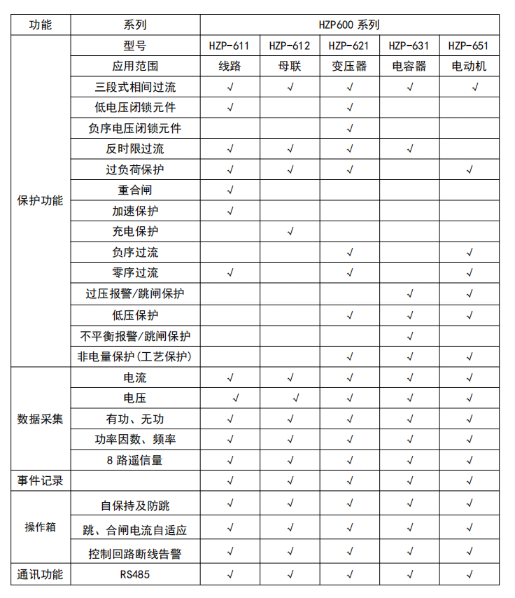 HZP600 系列微机保护测控装置适用于 10KV 及以下电压等级的线路、母联、电容器、电动机、厂用变的保护、测量及控制,既可以分散在开关柜就地安装,也可以集中组屏安装,提供通信接口,可以和其它保护、自动化设备一起,通过通信接口组成自动化系统。