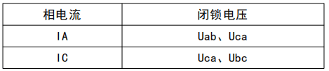 采用线电压按相闭锁方式,各相电流元件的闭锁情况为: