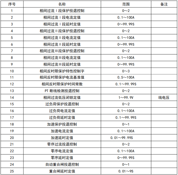 后加速记忆时间为 3S。后加速保护动作出口后,则不受后加速记忆时间的限制,直至线路开关跳开、电流元件返回后,后加速保护才返回。