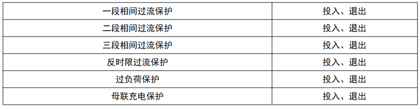 三段相间过流保护设有软压板,只有软压板和投退控制定值均为投入时,相应的保护段才投入。