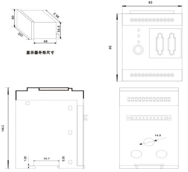 显示器开孔尺寸 96.5×54.5 本体 35mm 导轨安装