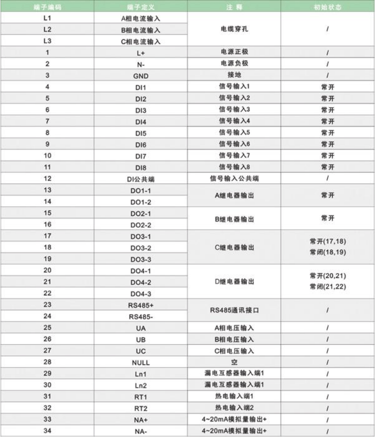 n代表选配功能数量,R代表RS485,L代表漏电保护,T代表温度保护,M代表模拟量 输出,DI代表开关量输入,DO代表继电器输出,如不需要选配功能,无需填写;