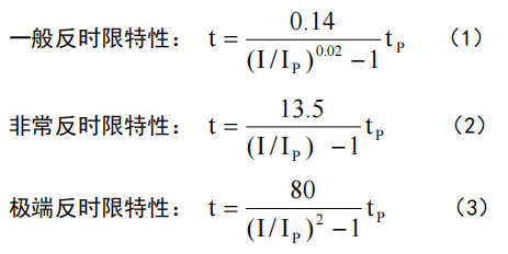 可选择使用下面三个标准的反时限特性之一。反时限特性电流基准值 IP 为相间反时限保护电流基准定值 Ii,反时限特性时间常数 tP 为相间反时限保护时间常数 tIi。