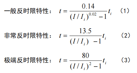相间反时限过流保护可选择使用三个标准的反时限特性之一,由投退和特性控制定值