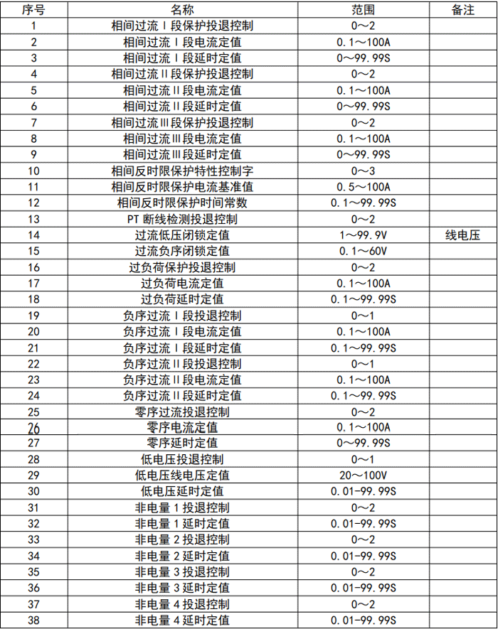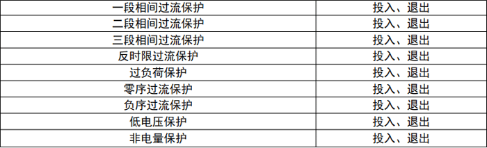 装置设置有三段相间过流保护:带复合电压闭锁的三段定时限,相间过流保护还可以 投入反时限,作为相间短路故障的保护。
